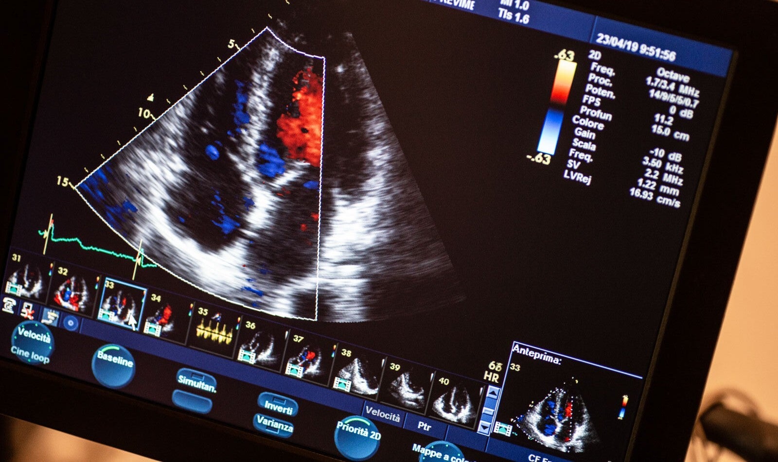 Esame ecografico del cuore che fornisce immagini dettagliate delle strutture cardiache, del flusso sanguigno e della funzione ventricolare.